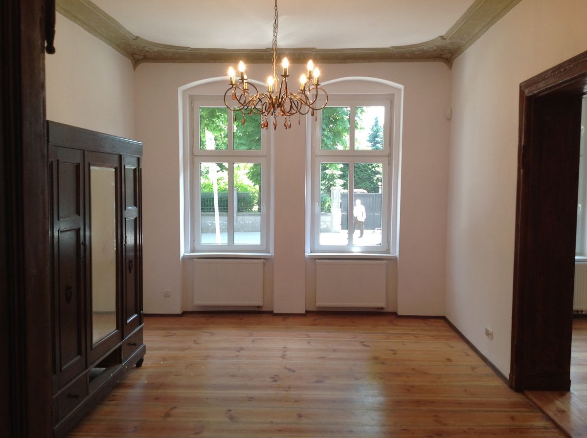 Mieszkanie jest w doskonałym stanie - świeżo odrestaurowane, z nowoczesnymi oknami PCV oraz ogrzewaniem gazowym, które gwarantuje ciepło nawet w chłodniejsze dni. W skład nieruchomości wchodzi pięć pokoi, umeblowana kuchnia i łazienka, co czyni ją idealną propozycją dla rodzin, współlokatorów lub inwestorów.